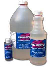 Rapid Remover is a non-toxic, water-soluble adhesive remover that breaks down and removes adhesives in as little as sixty seconds. Spray it on, wait a few minutes and easily wipe away residue adhesive with a plastic squeegee and paper towel. Not only is does Rapid Remover work fast, but it works without causing damage to most painted or bare metal surfaces.